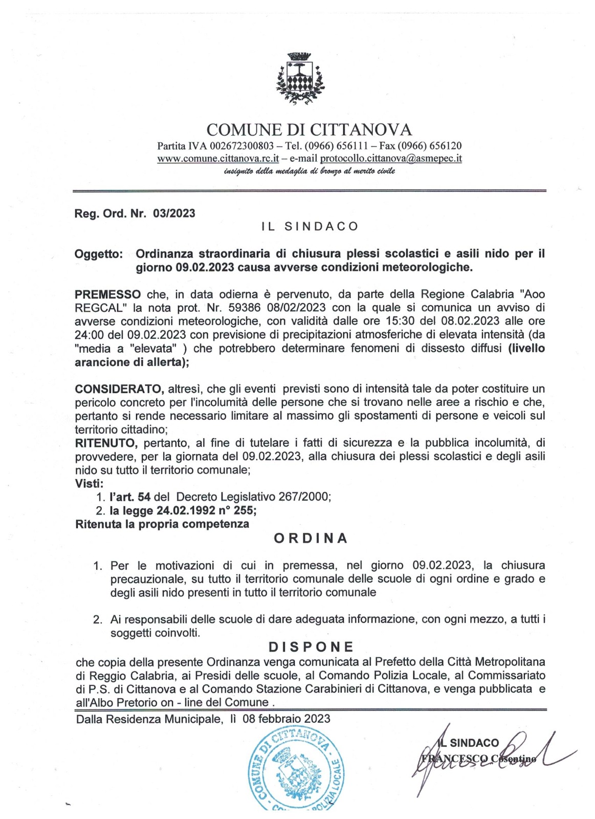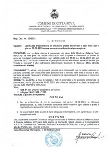 Ordinanza straordinaria di chiusura scuole