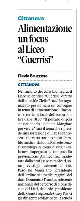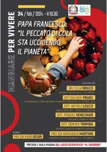 Circolare n.155 – Incontro sul Tema “Papa Francesco: il peccato di gola sta uccidendo il pianeta”. Mangiare per vivere.